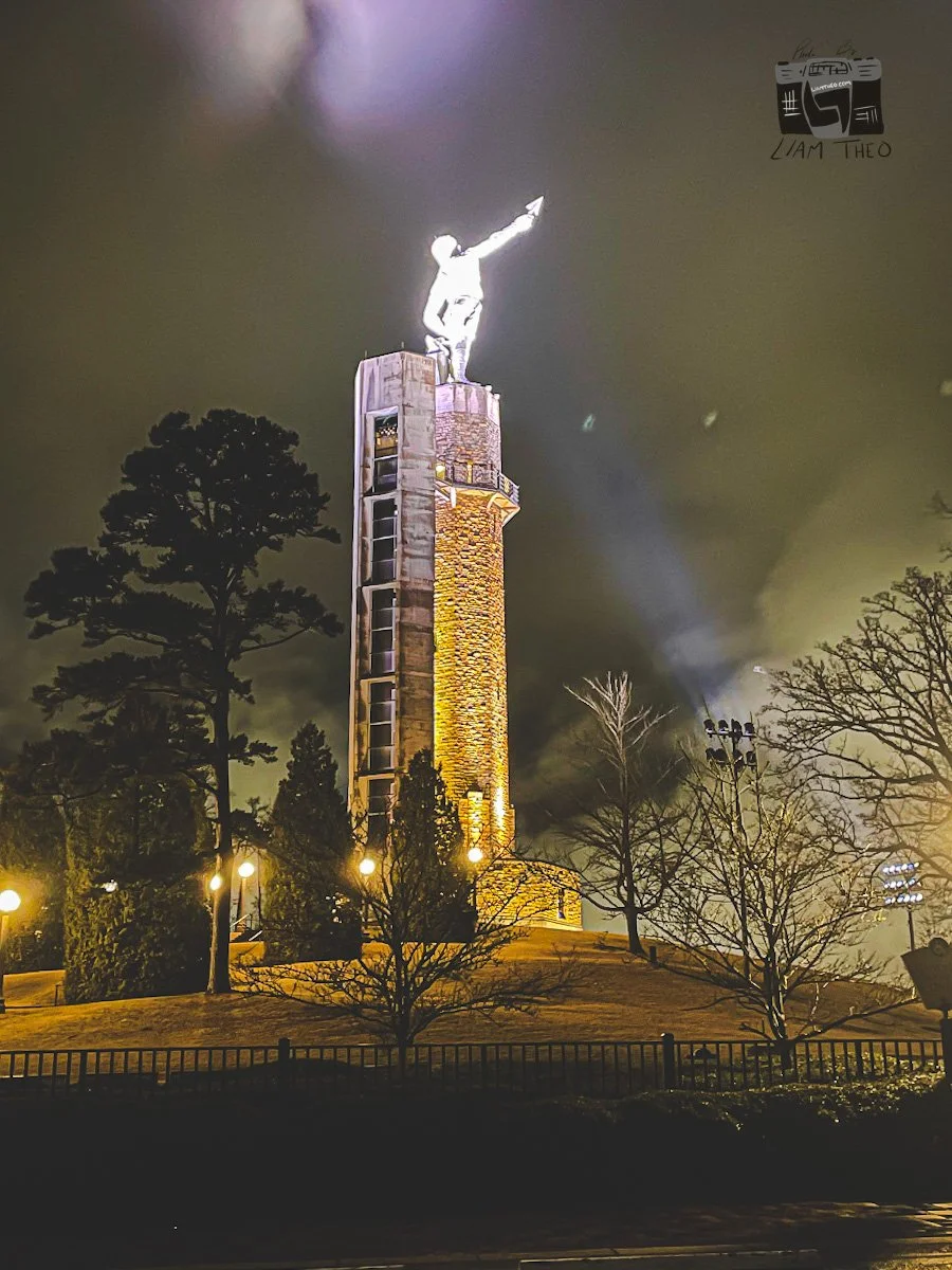 Up on the mountains here we saw a huge statue. Of course, we had to go check it out. It was only 6:30pm or so but it was already so dark. We figured that the park around this statue would be closed since it was a Sunday, but it was open. There’s the option to go to up on the statue and just look down on the city of Birmingham. It was such an incredible experience.